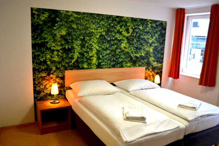Im Herzen der Esslinger City, direkt an der historischen Altstadt und dem berühmten Esslinger Mittelalter Weihnachtsmarkt liegt unser Haus. Urban – aber dank einer Sackgasse nicht an einer vielbefahrenen Straße, vorne mit Blick auf den Campus der historischen Hochschule, hinten mit Blick auf den vorbeiplätschernden Neckarkanal und den Maille-Park (mit Spielplatz) bieten wir Ihnen seit 2009 nachhaltiges, ökologisches Übernachten in 59 wohngesunden Zimmern.
