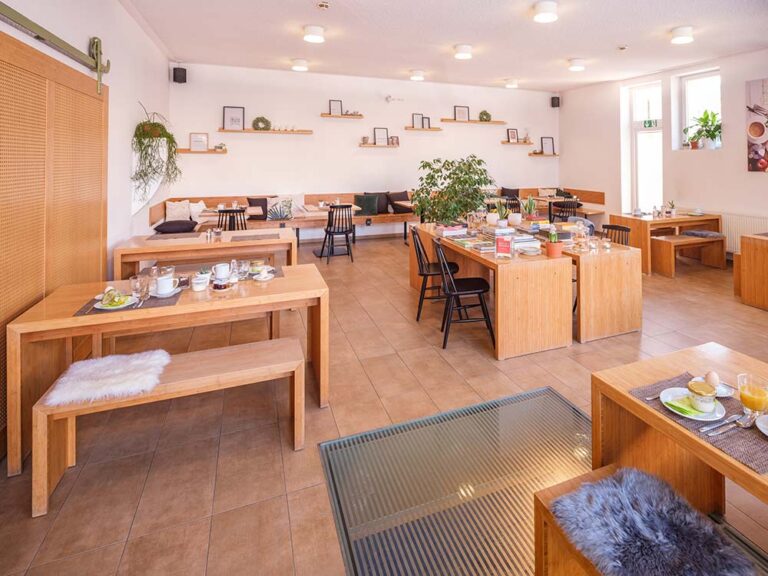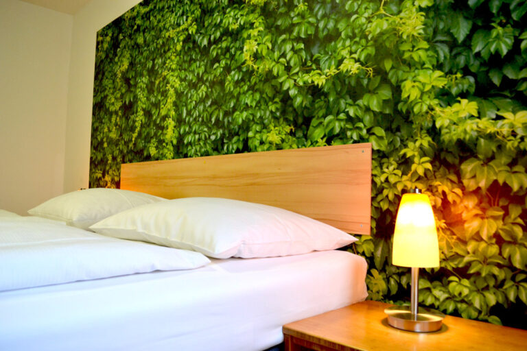 Zudem sind alle Zimmer mit baubiologisch unbedenklichen, nachhaltigen Materialien ausgestattet. Auf dem müllfreien Frühstücksbüffet bieten wir Ihnen fast ausschließlich hochwertige Produkte aus der Region (über 90 %) und in Bio-Qualität (ca. 80 %), wofür wir auch das Bio-Siegel verwenden dürfen.